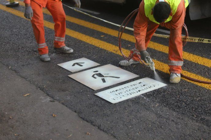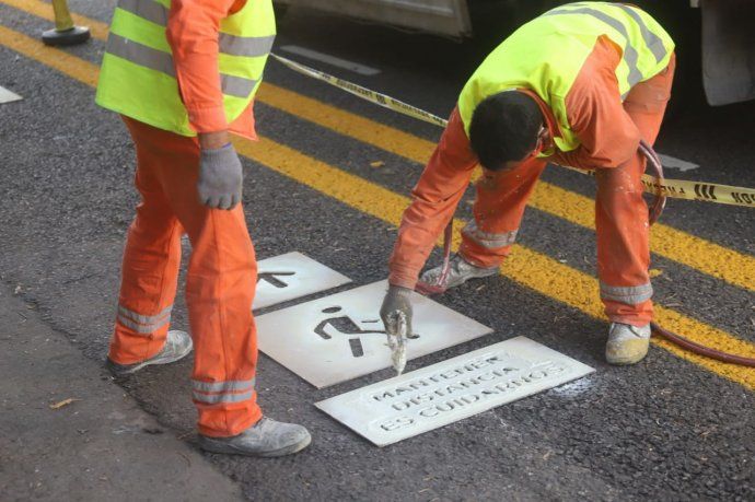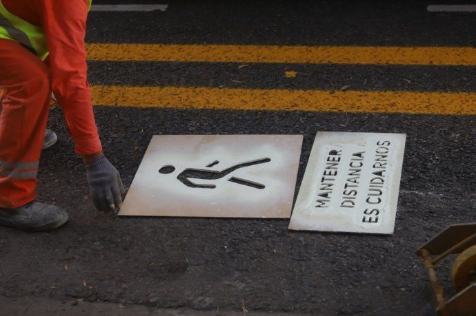 Nueva cartelería con instrucciones contra el coronavirus ya forman parte del paisaje urbano en la Ciudad.