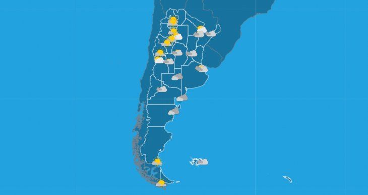 En San Fernando del Valle de Catamarca la mínima es de 4 grados y la máxima de 17 grados, también con muchas nubes en el cielo durante todo el día. En San Miguel de Tucumán las temperaturas llegarán a los 4 grados de mínima y 16 de máxima, con un cielo mayormente despejado. En Santiago del Estero habrá una máxima de 17 grados y un mínimo de cero, con neblina una vez entrada la mañana.