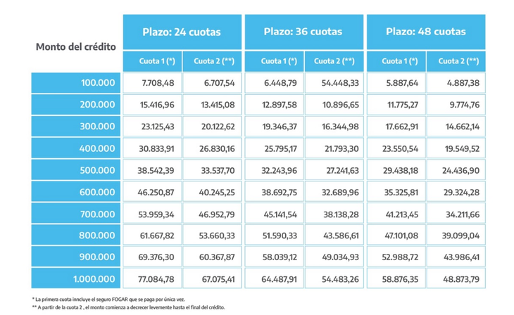 El monto de las cuotas del crédito solicitado en ANSES, dependerá del monto solicitado, el plazo elegido y los intereses: