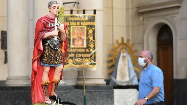 Una celebración atípica se llevó a cabo por el día de San Expedito, según la creencia católica el santo de las causas justas y urgentes, ya que un puñado de personas que pasaba por la puerta de la cerrada iglesia Nuestra Señora de Balvanera le rezó con barbijo puesto, mientras que muchos fieles lo hicieron desde su casa debido a la cuarentena obligatoria para frenar el avance de la pandemia de coronavirus.