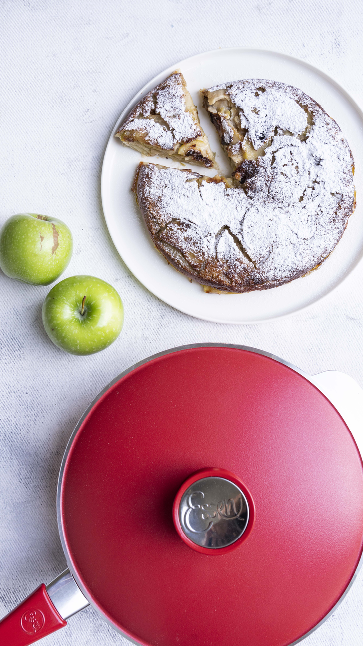 Llevar una dieta libre de gluten es posible mientras cuidas tu salud. Prepara esta torta cremosa de manzanas con la sartén de la línea fuego de Essen.