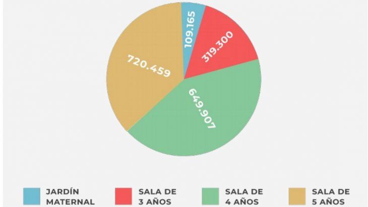 La sala de 3 años y el jardín maternal, en cambio, contienen al 18% y 6,1% de la matrícula del nivel, respectivamente. Un punto importante es que desde el punto de vista de la ley, sólo las salas de 4 y 5 años son obligatorias.