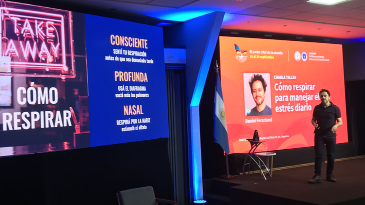 La tercera jornada cerró con una charla taller de Daniel Fersztand para aprender a hacer ejercicios de respiración en situaciones dificiles. "En los momentos en los que las papas queman hay cosas que uno puede hacer de corto plazo, que impactan en el momento sentir la respiración", sostuvo el experto en "bajar un cambio".