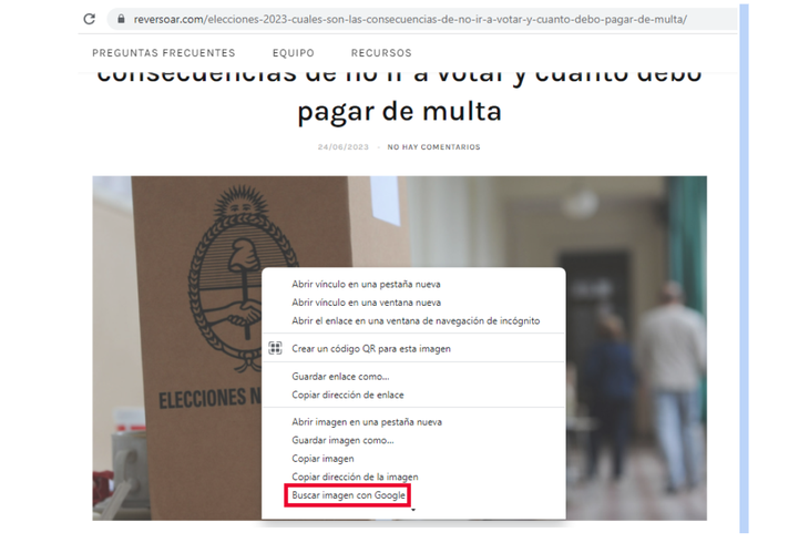 Lo primero que se puede hacer para verificar si una foto es real o circula con el contexto adecuado es hacer una búsqueda inversa para saber si ya existe un registro de esa imagen o si ya fue verificada.