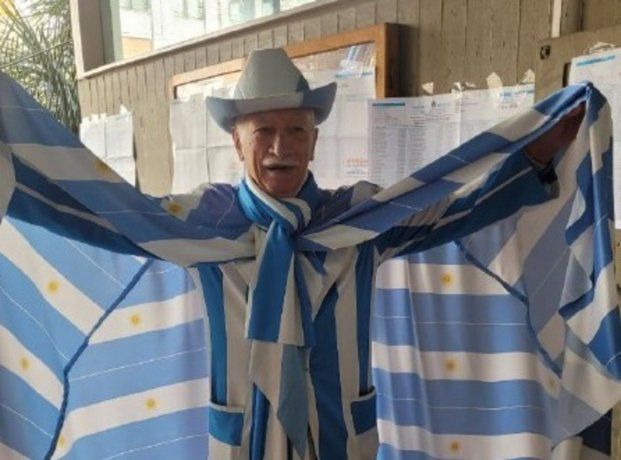 Como es habitual en cada elección, el sastre Jorge Williams se vistió por completo de celeste y blanco para ir a votar este domingo en Recoleta, en el marco de las Elecciones Primarias Abiertas, Simultáneas y Obligatorias .