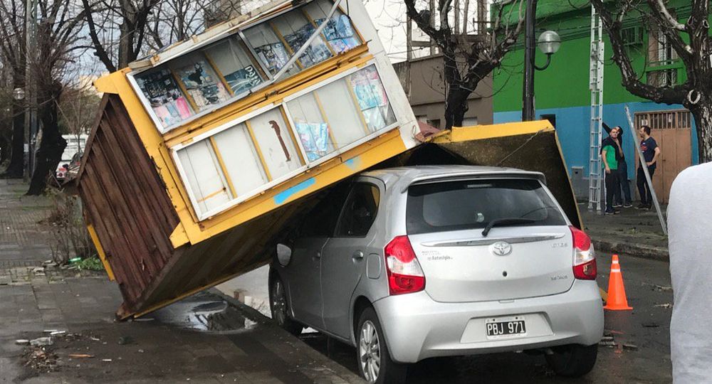 Un kiosco de diarios ubicado en 41 y 22 voló por el aire y terminó encima del techo de un Toyota Etios gris que se encontraba estacionado a metros del lugar.