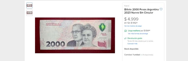 A través de la plataforma de compra y venta, Mercado Libre circula un ejemplar por el que los expertos en numismática llegan a pagar hasta $4.999. Aunque pueda parecer mentira, casi todos los días aparece algún detalle nuevo en los billetes argentinos. Y, por supuesto, las ventas de estos ejemplares suben también en las plataformas virtuales como Mercado Libre.