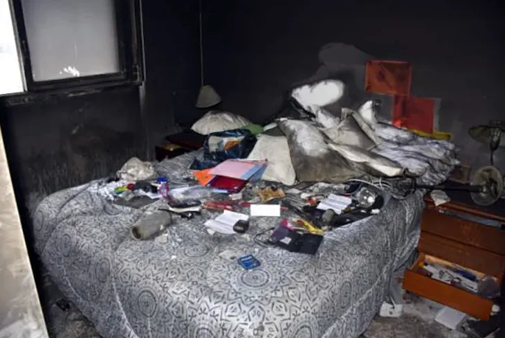 Las imágenes muestran un departamento totalmente cubierto por cenizas y hollín, con diferentes elementos de la casa quemados e irreconocibles. Allí se pueden ver paredes negras, y tanto la cocina como el living y un dormitorio totalmente destrozados y desordenados.
