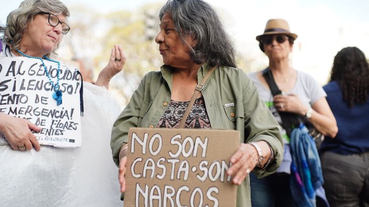 "Milei mulo de Trump" y "Milei vende patria", entre otros, fueron los mensajes que recorrieron la marcha. También hubo quienes aprovecharon para referirse al vínculo de José Luis Espert con el acusado por narcotráfico, Fred Machado. "No son casta, son narcos", señalaron.