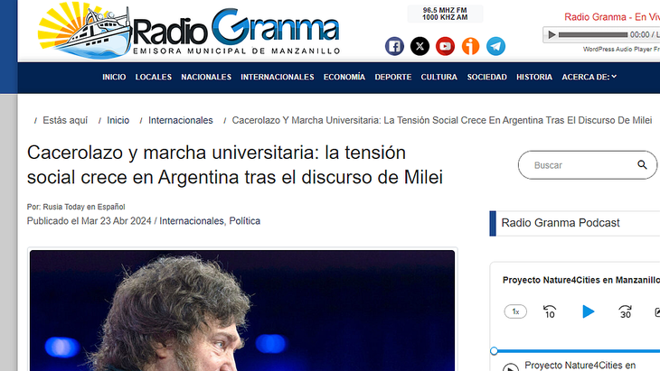Distintos medios de la región también compartieron la crónica de la movilización. El País de Uruguay fue uno de ellos: "Decenas de miles de personas coparon las calles de varias ciudades argentinas en una marcha masiva para repudiar los recortes de fondos a la universidad públicas. Se trata de la mayor manifestación hasta el momento contra la política de ajustes del presidente Javier Milei", señaló el medio latinoamericano.