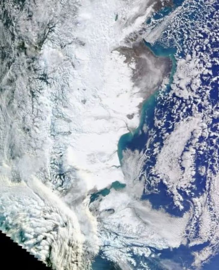 La Administración Nacional de Aeronáutica y el Espacio (NASA) publicó una impresionante fotografía satelital de la Patagonia argentina cubierta de nieve. En la foto se pueden ver las provincias de Tierra del Fuego, Santa Cruz, Chubut, Río Negro y Neuquén teñidas de blanco, debido a la ola polar que se percibió en el país en julio.