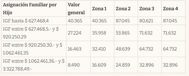 Los ingresos permitidos para poder cobrar la Asignación Familiar por Hijo a partir de agosto 2024 será de un mínimo de $627.468,4 a $ 3.322.788,49 como máximo.