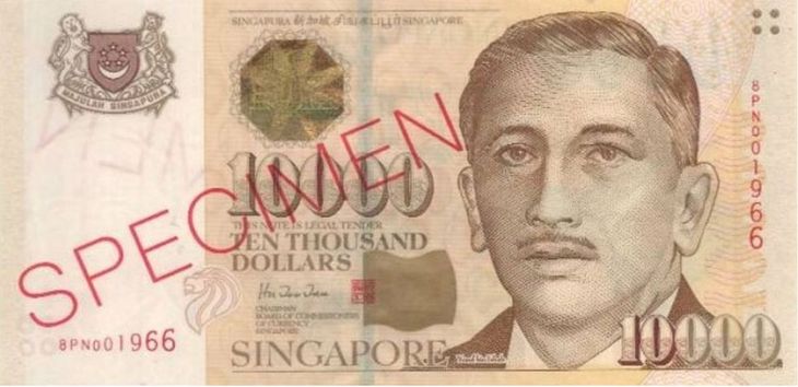 Este tipo de billete, emitido en Singapur en el año 1973, vale por sí solo 10.000 dólares. Lo fascinante es que continúa siendo de curso legal, aunque su última emisión fue en 1999. Diseñado simulando el oro, está protagonizado por el retrato del presidente Bin Yusof Ishak.