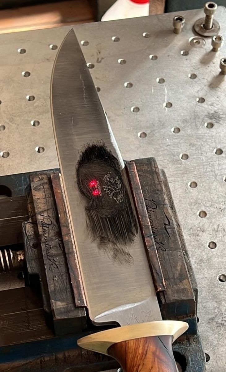 El cuchillo, fruto del trabajo de los tres artesanos, tendrá una hoja de 250mm de largo y 4.5mm de espesor de acero damasco y una vaina de cuero grabada a láser de máxima calidad. Se subastará el 1ro de abril a través de la cuenta de instagram de Aberastain.