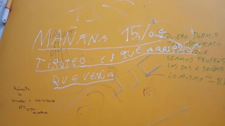 En la Provincia de Buenos Aires también se reportó un mensaje similar. En la Escuela N°26 de Villa Elisa, la amenaza escrita con corrector blanco en una pared advertía: “Mañana 15/04 tiroteo, el que arriesga que venga”.