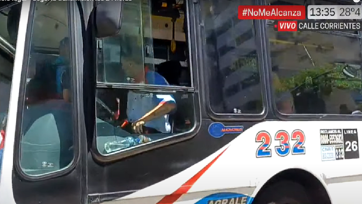 Según mostraron en vivo las imágenes del canal C5N, la unidad que embistió al hombre con chaleco celeste fue la 232. Ante la situación, el chofer frenó y se puso a diposición de otros efectivos, que rodeaban la zona y subieron al colectivo para intervenir.