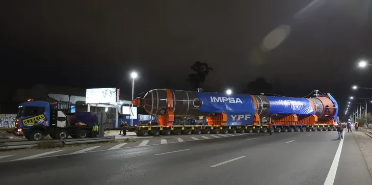 Mega operativo para que el reactor de Impsa llegue a la refinería de YPF sin que colapse un puente