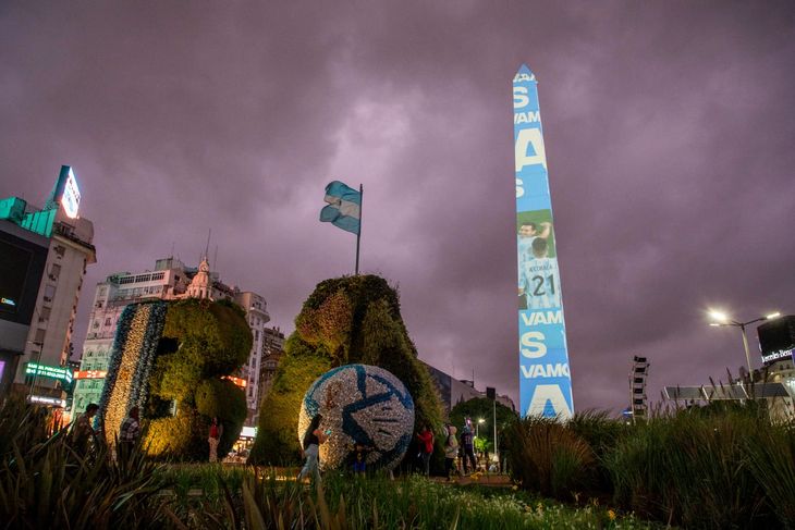 Como cada previa a los partidos de la Scaloneta, el monumento ofrecerá esta noche un diseño exclusivo de Nicolas Bernaudo.