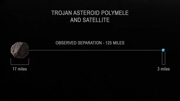 La misión Lucy de la NASA, la primera nave espacial lanzada para explorar los asteroides troyanos (una población de asteroides primitivos que orbitan junto con Júpiter) reveló un resultado sorpresa: el 27 de marzo, el equipo científico de Lucy descubrió que el asteroide troyano más pequeño de la misión, Polymele, tiene un satélite propio.