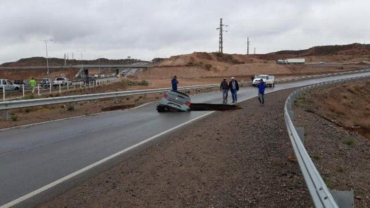 Colapsó parte de una ruta y un auto fue "tragado" por la tierra