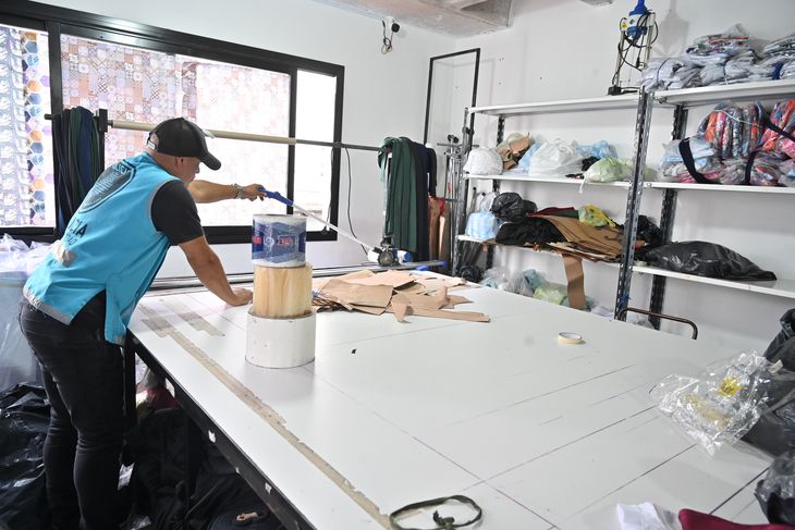 Los efectivos comprobaron rápidamente que en una oficina del primer piso funcionaba un taller textil de confección y armado de prendas, equipado con una mesa de grandes dimensiones y una máquina de corte de telas, y que en ese momento se encontraban trabajando seis personas, tres de ellas menores de edad, por lo que fue solicitada una brigada de la División Trata de Personas de la Policía de la Ciudad, quienes realizaron una inspección ocular del edificio en búsqueda de indicios que pudieran dar cuenta de un caso de trata.