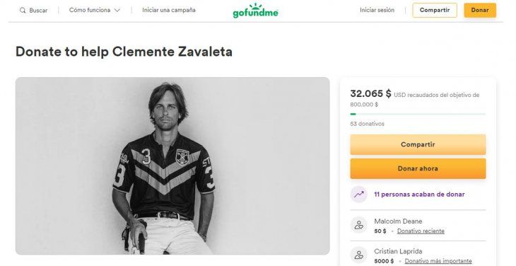 "Estamos pidiendo a nuestros amigos de todo el mundo que ayuden a recaudar fondos para Clemente "Corchito" Zavaleta. Clemente sufrió un terrible accidente mientras jugaba al polo. En un esfuerzo por ayudar a Clemente y su familia a aliviar parte del estrés durante este momento difícil, le pedimos a la comunidad del polo que se una y done lo que pueda para ayudar con las facturas médicas y otros gastos que los Zavaleta puedan enfrentar durante estos tiempos", aseguran en la descripción de la colecta.