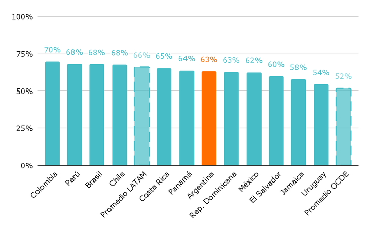El informe también muestra otras tensiones. El 47% de los estudiantes reconoce que su familia los presiona respecto a qué camino seguir (ver gráfico 2), cifra que trepa al 55% en los sectores más bajos. Además, aunque el 76% considera que la escuela les brinda aprendizajes útiles para el trabajo, 7 de cada 10 manifiestan sentirse inseguros sobre si están realmente preparados para la vida adulta. En comparación regional, la Argentina no logra despegarse. Mientras que países como Colombia, Costa Rica o Perú reportan niveles más altos de estudiantes que se sienten informados y confiados sobre su futuro, los adolescentes argentinos se muestran más preocupados y con expectativas atravesadas por la incertidumbre económica.