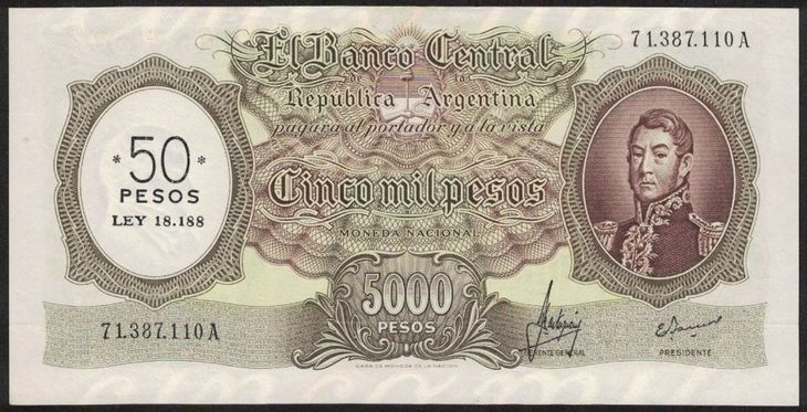 En este caso, se trata de un billete de 5.000 Pesos Moneda Nacional Resellado a 50 Pesos Ley 18.188. Este ejemplar serie "A" fue emitido en 1969 y es por esto que ya no circula en la actualidad. Si bien, el billete no tiene un valor monetario aporta un alto valor histórico. Esa es una de las razones por las que está publicada a un número más alto que el de su propio valor nominal.