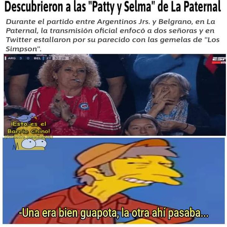 Los más curioso del gracioso momento, no fue el parecido físico, sino que ambas hinchas de estaban, al igual que las hermanas de Marge Simpson, con un cigarrillo en la boca, ya que al parecer estaban aplaudiendo a su equipo.