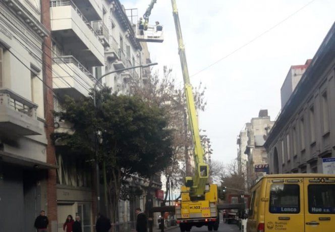 El incendio se desató en el segundo piso de un edificio de tres plantas ubicado en la esquina de Bartolomé Mitre y Libertad, donde una mujer de 65 años se colgó de un cable para escapar del fuego hacia la calle y fue rescatada por personal del SAME.