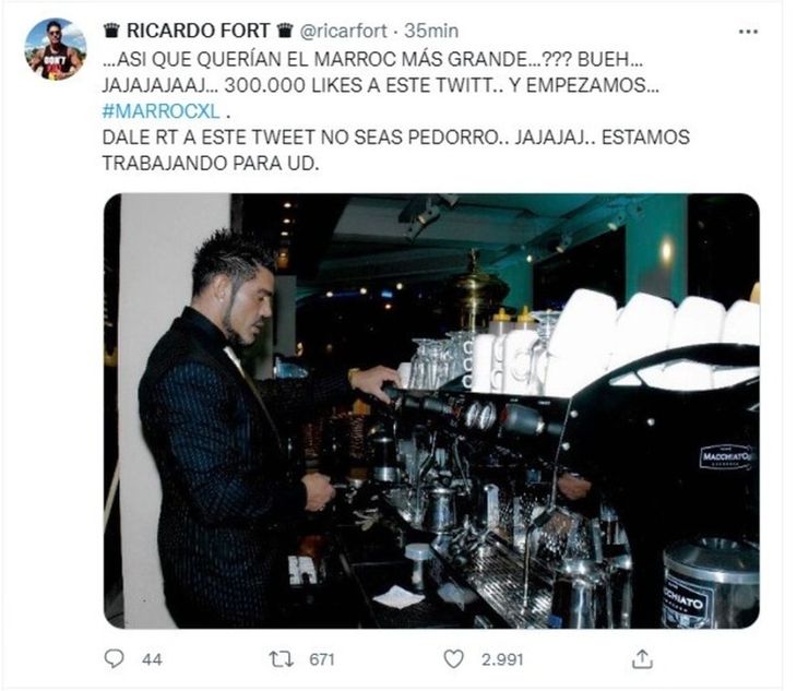 Con los años, el deseo y la ilusión crecieron a grandes pasos. En su cuenta de Instagram, el actual heredero de Ricardo usó una herramienta para interactuar con sus seguidores y comentar acerca de esta propuesta. “¿Este 2023 se hará realidad el Marroc más grande o cuándo?”, decía el mensaje, a lo que responde junto al emoji de una carita, sonándose la nariz con un pañuelo: "Espero que sí".