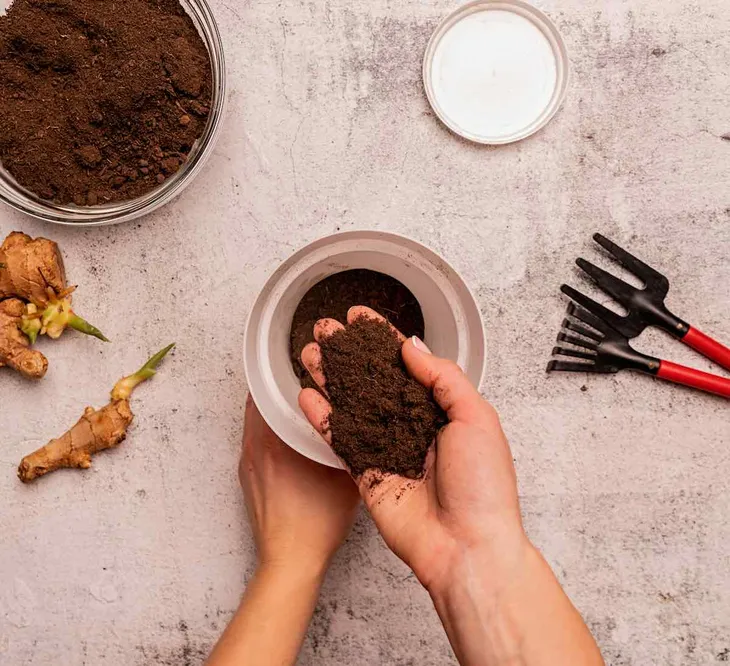 4. Se puede sembrar en macetas (éstas deben tener un orificio en la parte inferior, para drenar el agua) o directamente en el suelo si se tiene jardín. Importante: debe recibir luz solar indirecta y no darle el sol todo el día (puede ser en interior, cerca de una ventana). Hacer un hueco de unos 5 centímetros de profundidad, colocar ahí el jengibre con el nudo hacia arriba y cubrir con tierra. Asegurarse que haya aproximadamente 10 centímetros de distancia entre cada trozo que se siembre.