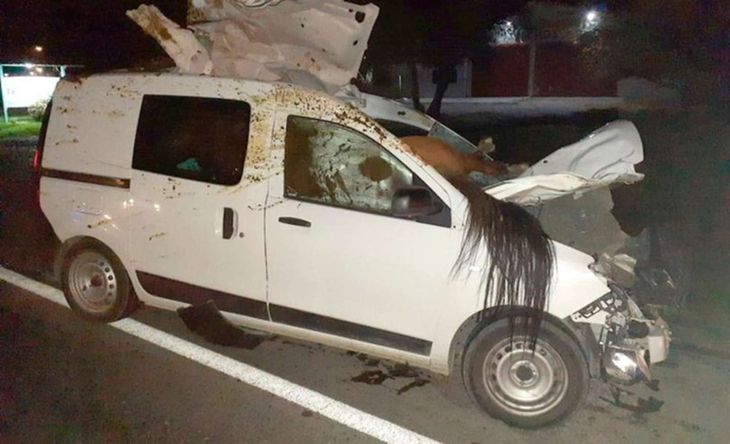 Una mujer atropelló a un caballo, el animal terminó incrustado en la camioneta y murió al instante