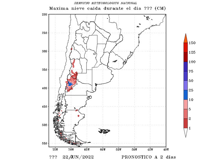 Las nevadas continuarán hasta el 24 de junio en zonas más amplias, de manera más recurrente y más intensas. En este periodo afectarán la cordillera y la meseta del norte de Chubut, Río Negro y Neuquén, así como también en la cordillera de Mendoza y San Juan. Se espera que al final de la semana algunas de las zonas mencionadas hayan acumulado entre 20 y 50 cm de nieve.