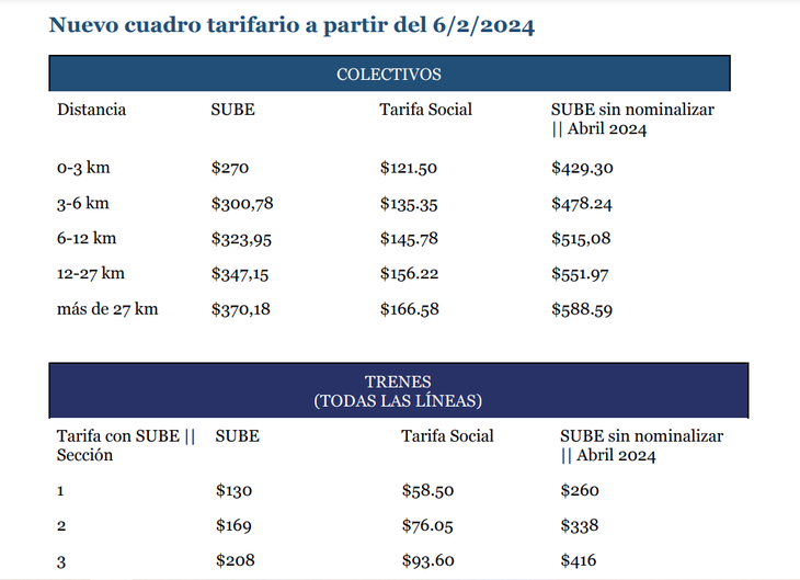 Aumentos del transporte público: cuánto cuesta el boleto de colectivos y trenes en febrero 2024