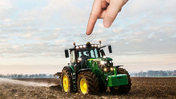 En la más reciente de John Deere, que combina su popular tractor 8R, GPS y nuevas tecnologías, no es necesario estar en la cabina o ni siquiera en el terreno: el agricultor puede controlar todo desde su teléfono inteligente.