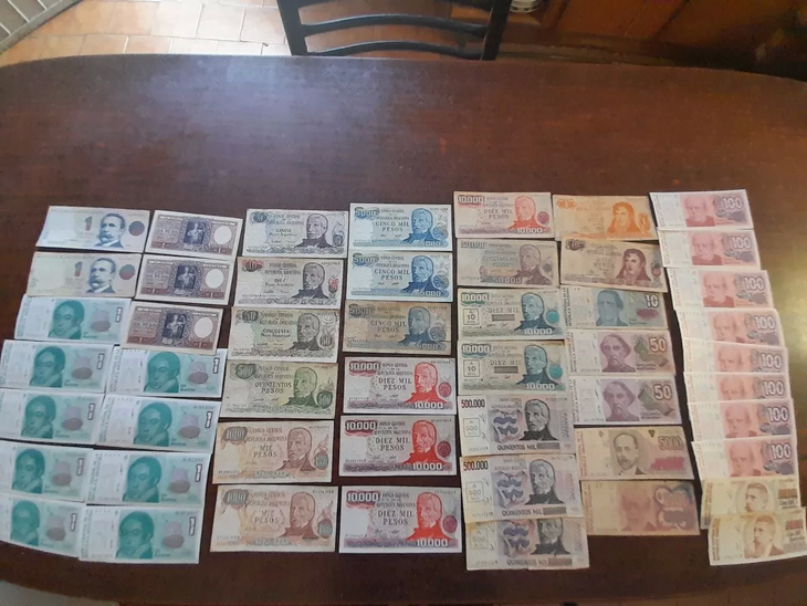 Se trata de Australes con valores diferentes: hay de 1, 10, 50, 100, 5.000, 10.000 y 500.000.