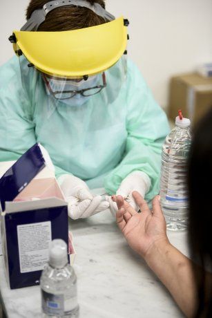 También se les realizará un escáner térmico para detectar si tienen temperatura y, en el caso de no presentar fiebre, se procederá a la toma de una pequeña gota de sangre (a través de un pinchazo capilar en el dedo) para colocarla en el test.