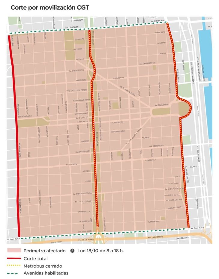 Se verá afectado el funcionamiento del Metrobus 9 de Julio y el Metrobus del Bajo. Para garantizar el servicio habrá cambios en los recorridos habituales de las líneas de colectivo 2-5-6-8-9-10-12-17-22-23-24-28-29-33-37-39-45-50-53-56-59-60-61-62-64-67-70-74-84-86-90-91-93-96-98-100-102-103-105-111-126-129-130-143-146-150-151-152-159-168-195.