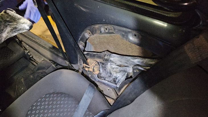 Durante la inspección manual del rodado advirtieron signos de reparaciones recientes y además, que el sector del baúl no era acorde al modelo original del rodado. Por ello, decidieron someter el rodado a rayos X y convocar al personal de las fuerzas de seguridad.