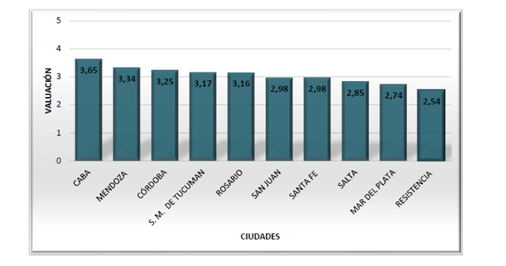 En términos generales, la valuación global de las diez ciudades estudiadas tuvo un leve incremento de 0,06 puntos. La Ciudad Autónoma de Buenos Aires sostiene la mayor valuación general y en cada una de las dimensiones de análisis que ya había obtenido en 2024. Las cifras globales de la capital del país muestran una situación estable, con valores similares a los alcanzados en la medición del año pasado.