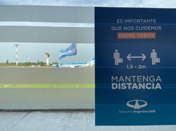 Al llegar a Aeroparque, el personal de salud nos pide nuestra documentación y nos toma la temperatura para descartar uno de los síntomas del Covid-19. Además, dentro del protocolo es clave el distanciamiento social en las filas para el check-in y en todo el desplazamiento por el aeropuerto. Las pantallas nos indican el destino al cual nos dirigimos, uno de los vuelos especiales de Aerolíneas Argentinas solicitados por el gobierno de Chaco.