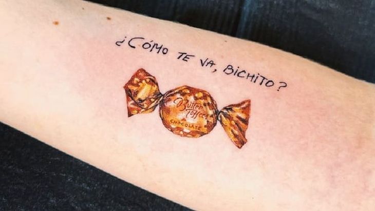 En 2023, lamentablemente, Lalo partió y Lucía decidió plasmar su recuerdo en un particular tatuaje: un caramelo Butter Toffees junto con la frase: “¿cómo te va, bichito?”, que representa cada momento compartido. “Perdí a mi abuelo el año pasado y quería tener una parte de él para siempre: mi abuelo cada vez que me veía me saludaba, me decía ¿cómo estás bichito?, y “¿querés un caramelito?”, y me convidaba un caramelo. Llevar el caramelo tatuado me recuerda a él cada vez que lo veo”, cuenta Lucía.