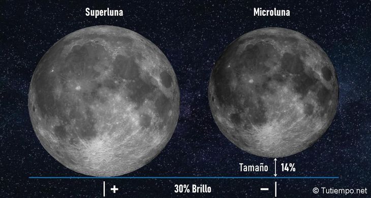 Ese punto se conoce como apogeo lunar, y es la clave para poder entender el por qué la Luna se ve más pequeña. Al estar más lejos, su tamaño parece mucho más pequeño al igual que su brillo, que da la ilusión de desvanecerse. En este caso, se calcula que va a ser aproximadamente un 5,5% más chiquita y un 10% menos brillante que una luna llena promedio y hasta un 14,1% más chica que una superluna, que es cuando la Luna llena ocurre en el perigeo.