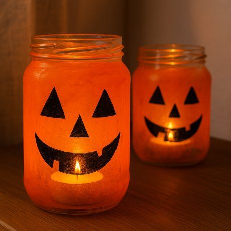 No hace falta comprar nada: esos frascos de mermelada que guardás pueden transformarse en pequeñas calabazas luminosas. Pintalos por fuera con témpera o marcador naranja y dibujales las clásicas caras talladas: triángulos por ojos, una sonrisa torcidita, o la expresión que más te divierta. Si no tenés pintura, envolvelos con papel naranja o incluso servilletas del color y sellalos con cinta o hilo.
