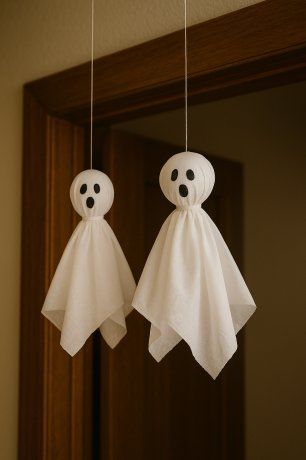 Un clásico que nunca falla. Agarrá una servilleta, una bolsita blanca o un retazo de sábana vieja. En el centro, colocá una bolita de papel o algodón, atála con hilo y dibujale los ojos con marcador negro. Ya tenés tu pequeño espectro.