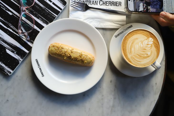 En Gontran Cherrier, el café de especialidad —una mezcla única de granos tostados de Perú y Brasil provista por Coffee Town— brinda una amplia gama de opciones. Desde los clásicos ristretto, espresso y capuccino, hasta creaciones de autor como el Doppio café comme à París o el Capuccino pistache, hay una alternativa para cada paladar. Cada bebida se realza al maridarse con sus croissants, elaborados con harina y manteca francesas, o sus pains au chocolat, entre otras delicias de patisserie.