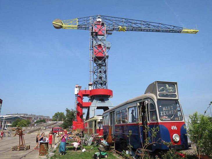 La colorida grúa en pleno corazón de Ámsterdam que es un hotel de lujo