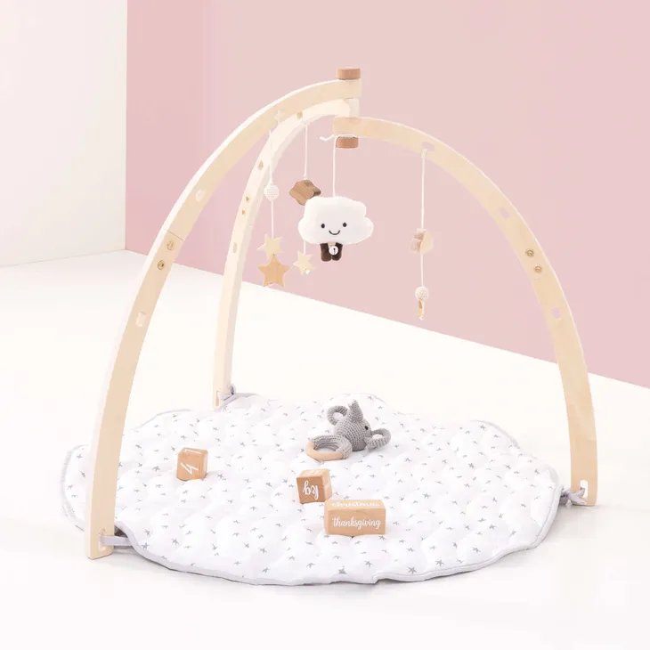 Gimnasios de cuna o de piso: permiten que estire brazos y piernas, mire figuras coloridas y siga sonidos, lo que fortalece su coordinación y motricidad.
