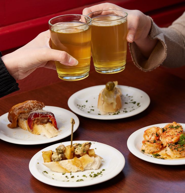 A Coruña, la nueva cantina española de Versalles, armó una propuesta en formato de tapeo para disfrutar este 14 de febrero, desde las 18 h, a $40.000 por persona. La experiencia incluye dos sidras de bienvenida, una tapa de papas bravas y dos pinchos a elección, con opciones como jamón crudo con tomate y ajo; tortilla con langostinos y perejil; mejillones al verdeo con papas cubo; boquerones con ajíes en vinagre y aceitunas verdes; chorizos a la sidra con morrones asados y queso sardo rallado; o jibia con papa rejilla y alioli.
